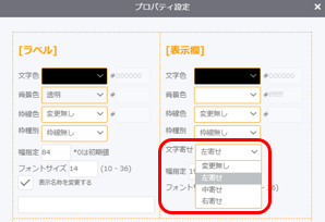 ※文字寄せ(「左寄せ」「中寄せ」「右寄せ」)は、「文字」と「選択項目(ドロップダウンリスト)」属性のみ可能です。
