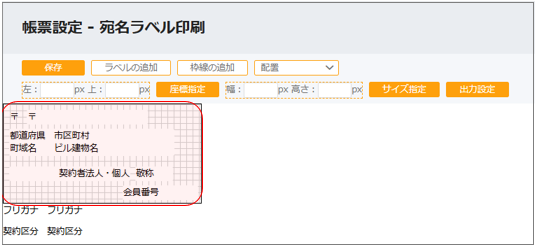 宛名ラベルの帳票設定(項目の配置など)を行います。