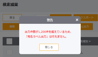 出力件数が1,200件を超えた場合は、警告メッセージが表示されます。